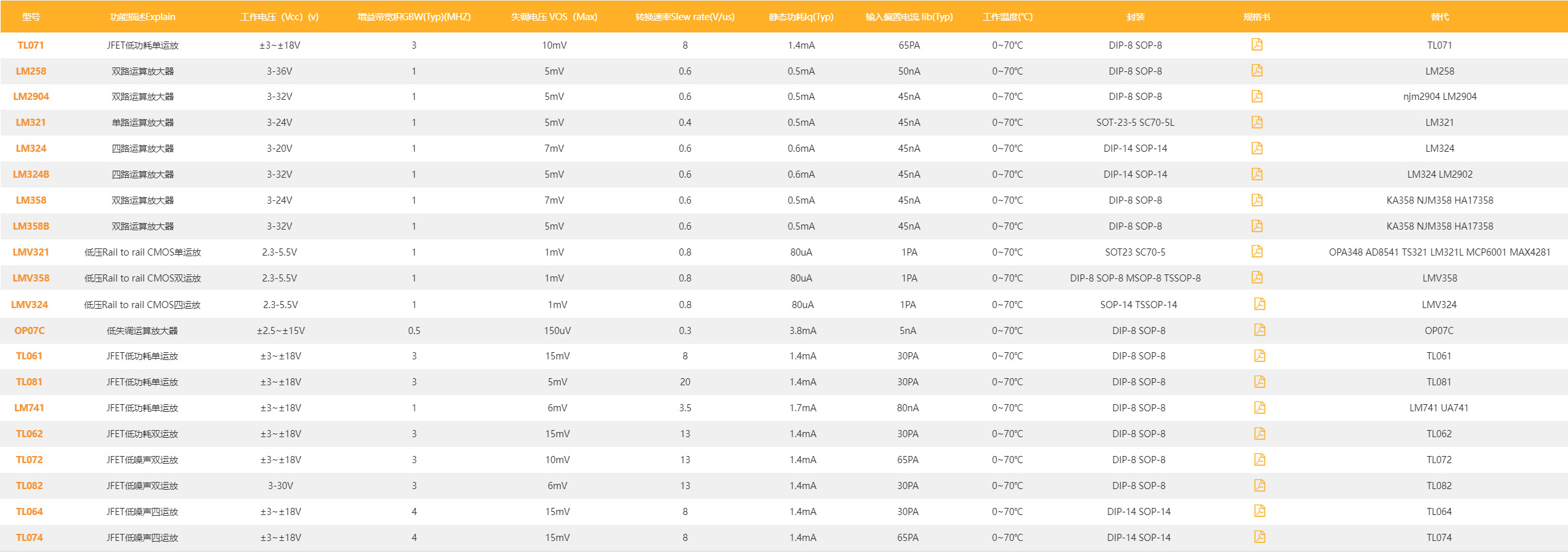 通用及低功耗运算放大器,比较器,音频放大器